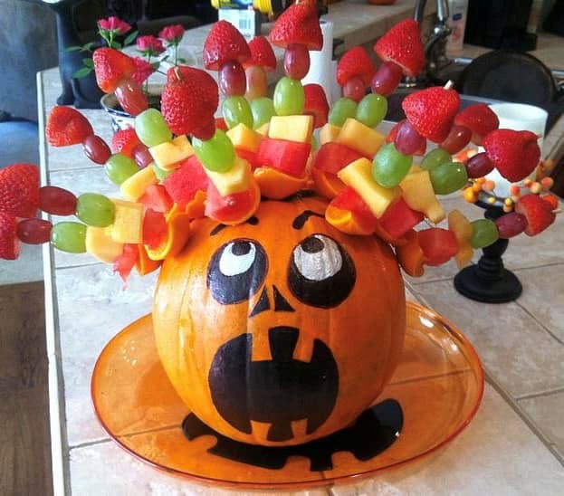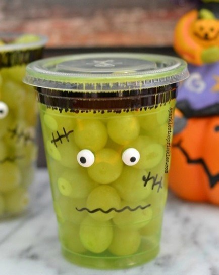 Clear plastic cups can be decorated to make some freakish faces and then filled with fruit, such as grapes or a fruit salad. Children will have great fun decorating the cups.