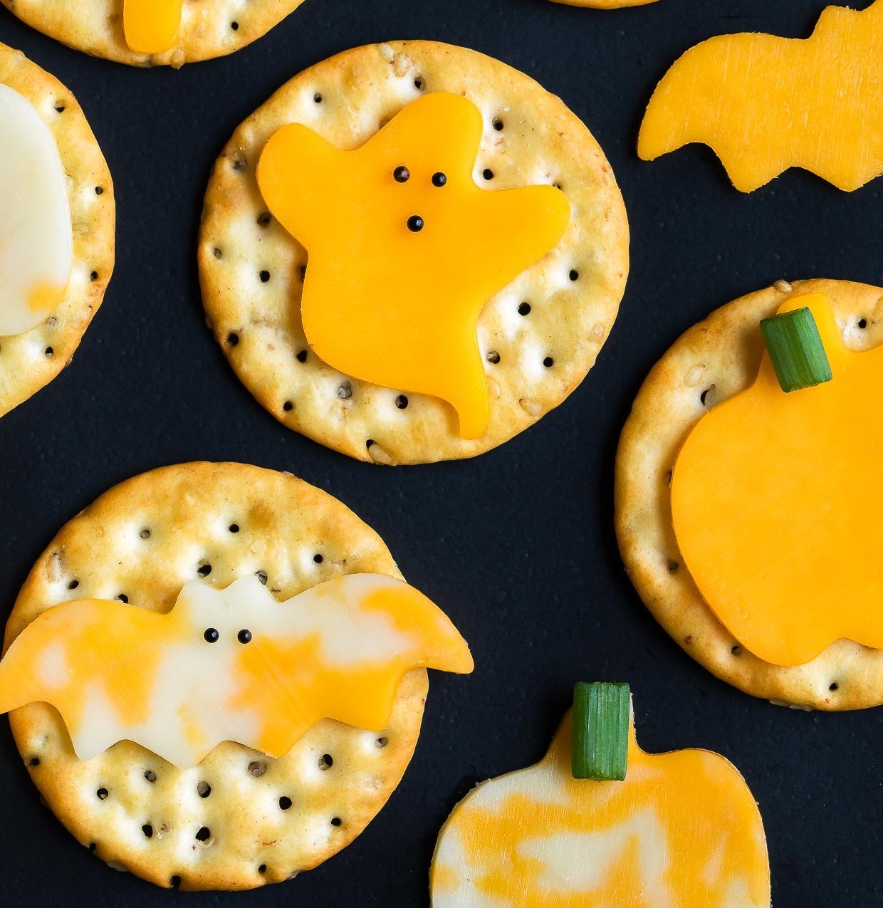 These spooky savoury snacks are really simple to make with some cheese cut out in the shape of ghosts or bats and put on crackers.
